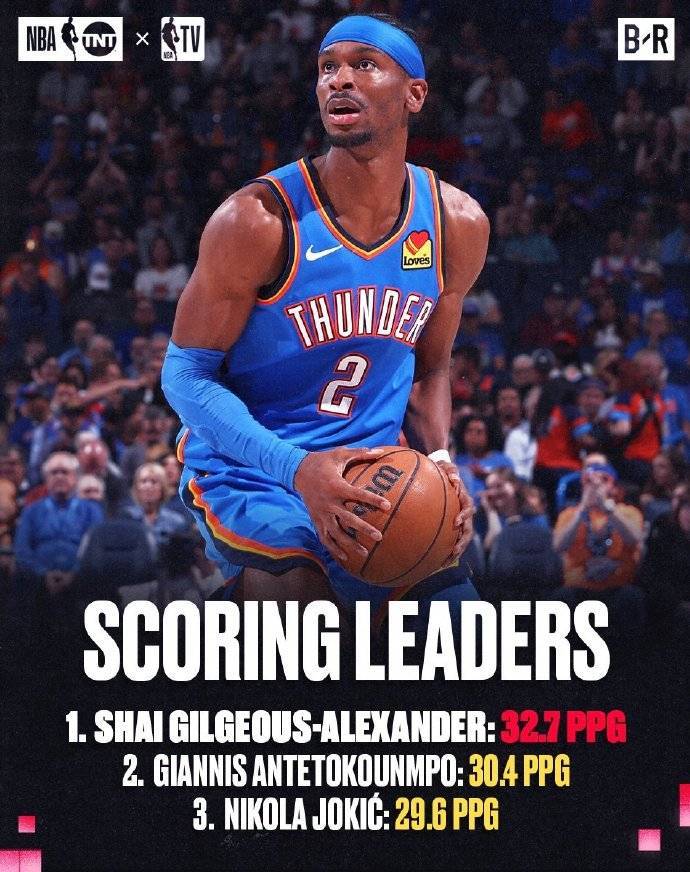 1.得分王:吉尔吉斯-亚历山大(常规赛场均32.7分)